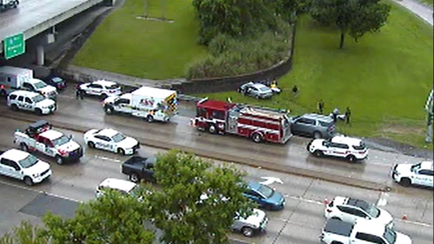 The accident happened in the southbound lane of O'Neal Lane near Commercial Avenue and all lanes have been blocked, including the exit ramp.