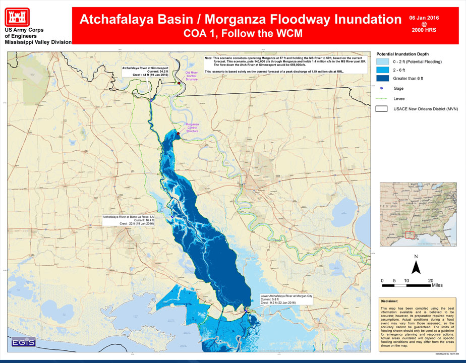 This afternoon, the Army Corps of Engineers released possible inundation elevations if the Morganza Spillway is opened. Click on the maps below for full-sized PDFs.