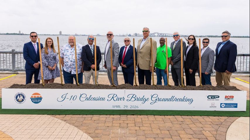 LAKE CHARLES - Louisiana leaders posed at the groundbreaking on the Calcasieu River Bridge, a project Governor Jeff Landry says is the largest infrastructure job in the state's history.