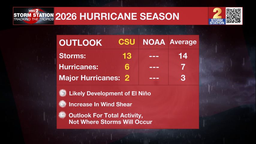 The team at CSU Colorado State University and the Storm Station remind that “it only takes one hurricane making landfall to make it an active season for you,” so prepare accordingly. NOAA’s official outlook is expected in Late May. For more on the season ahead and preparedness, visit wbrz.com/weather and click on the hurricane center.