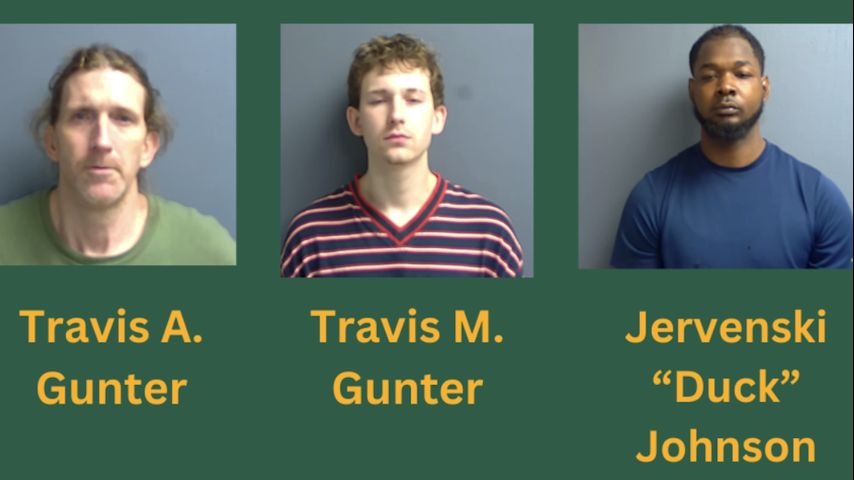 According to the sheriff's office, 48-year-old Travis Allen Gunter, his 26-year-old son Travis Michael Gunter and 32-year-old Jervenski "Duck" Johnson were selling drugs out of a home along Bennett Road.