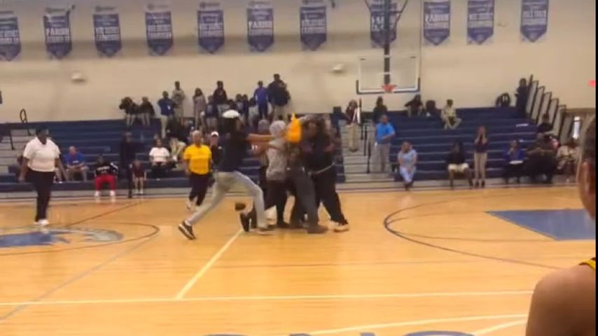 A video sent to WBRZ shows multiple men throwing punches in the middle of the court and then people running onto the hardwood from the bleachers - some to intervene and others adding to the chaos.