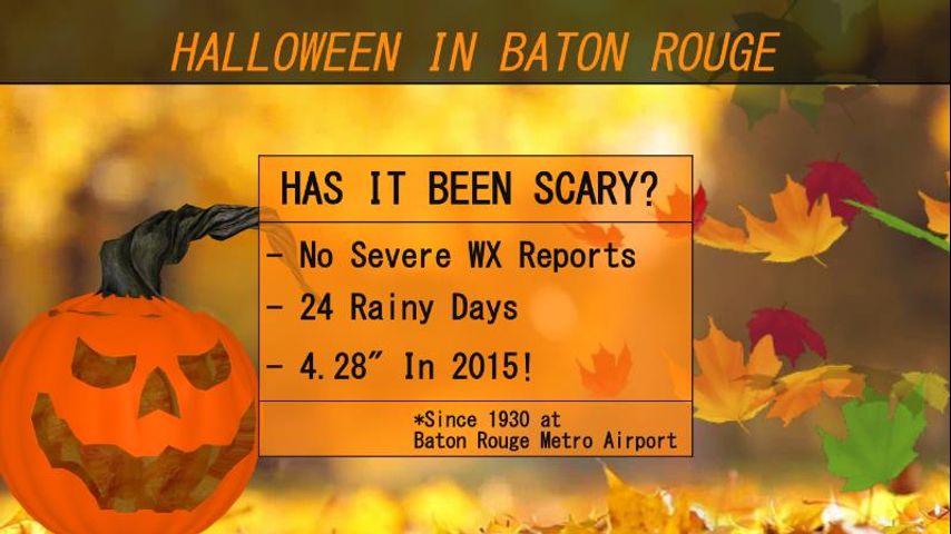 Halloween 2015 was an entirely different story. A slow moving frontal system brought heavy rain to the area and while no severe weather was reported in Baton Rouge, wind and tornado damage did occur in both Livingston and Tangipahoa Parishes.