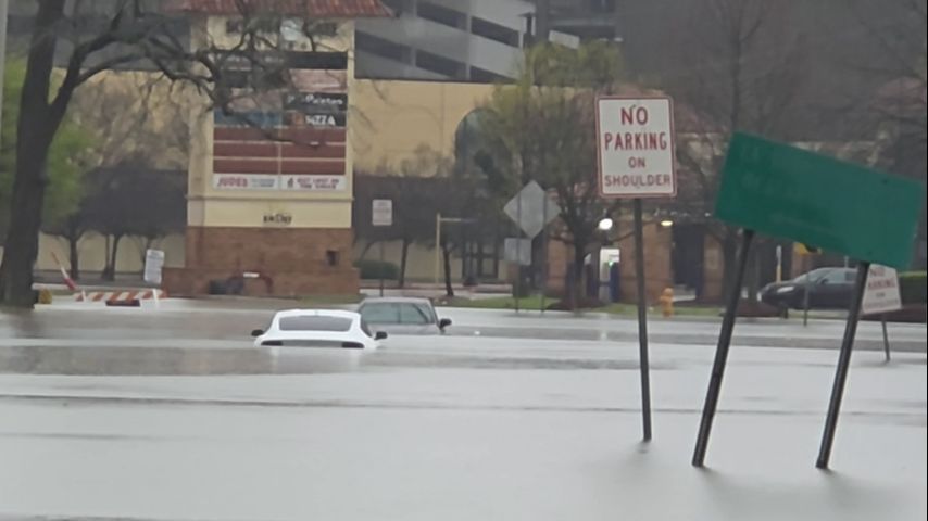A video sent to WBRZ shows several vehicles near LSU's campus submerged in rainwater, with water reaching up to the hoods.