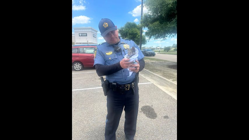 The Livingston Parish Sheriff's Office said that employees noticed the tiny kitten in the drain and called for deputies and firefighters who were able to rescue the animal.