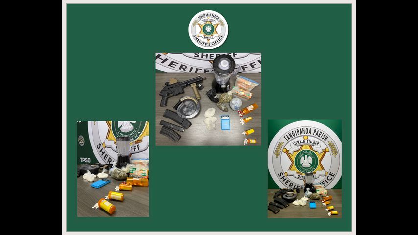 TPSO said in a search of the home, deputies found drugs, "evidence of drug production and distribution," a semi-automatic gun with a 90-round drum magazine and a 30-round magazine for a different weapon.