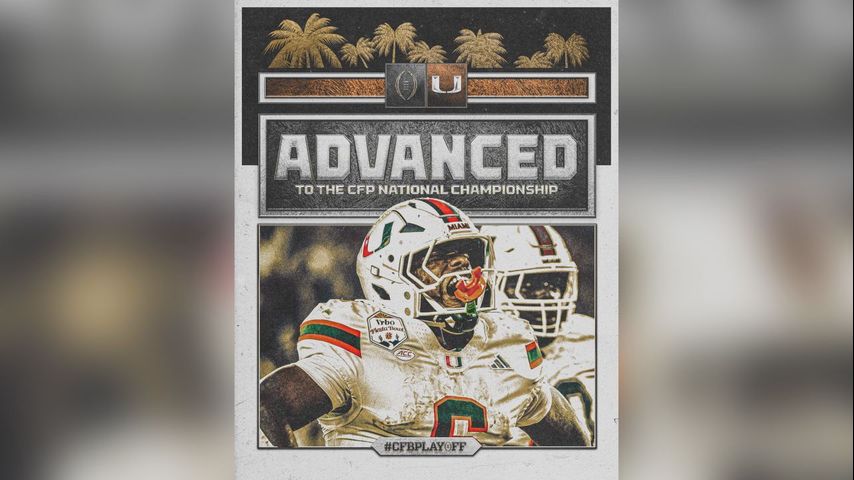 Miami advances to the National Championship and will play the winner of No. 5 Oregon and No. 1 Indiana in the Chick-Fil-A Peach Bowl. The Peach Bowl will kick off at 6:30 p.m. on Friday.