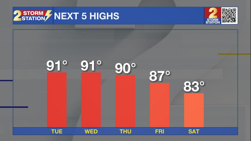 We begin this workweek with daily high temperatures continuing their streak in the 90s, but by the weekend we should see temperatures closer to average for this time of year. Rain chances remain scarce to start the week.