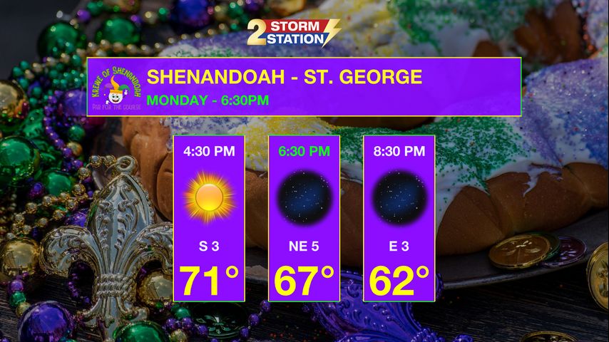 What to look out for: Parade weather for Lundi Gras looks ideal. Sunshine and highs near 70° this afternoon will give way to cooler 50s this evening. Winds remain light, so no issues for floats or throws. Overall, dry, calm, and very Carnival-friendly weather across the Baton Rouge area. Events and all parades will be fine on Tuesday!