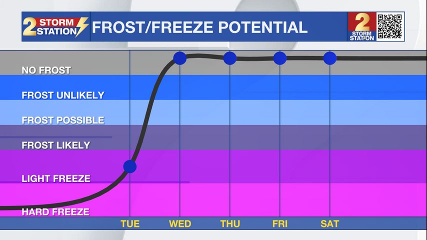 Plants: Keep sensitive vegetation covered or indoors. Fewer will experience a hard freeze, but a light freeze appears likely at the very least for most.