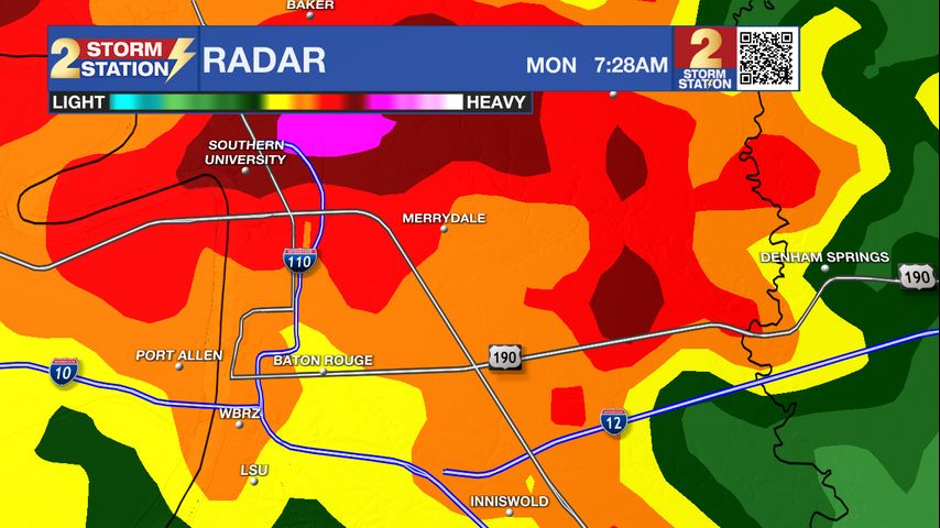 A severe thunderstorm that moved through Baton Rouge early Monday morning produced a wind gust of 78 mph at Baton Rouge Metro Airport. This ties for the third-highest wind gust recorded at the airport since records began in 1942.