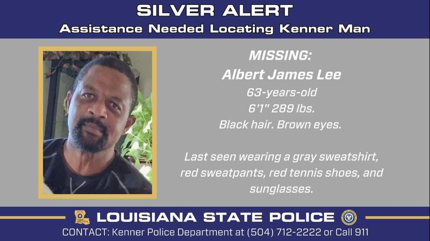 Albert James Lee, 63, was last seen near the intersection of West Esplanade Avenue and Loyola Drive around 12:30 p.m. on Sunday, LSP said. He was wearing a gray sweatshirt, red sweatpants, red tennis shoes and sunglasses.