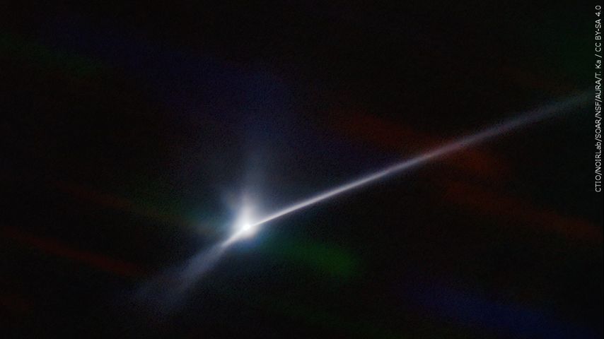 Astronomers using the NSF’s NOIRLab’s SOAR telescope in Chile captured the vast plume of dust and debris blasted from the surface of the asteroid Dimorphos by NASA’s DART spacecraft when it impacted on Sept. 26, 2022. Photo Date: 10/02/2022