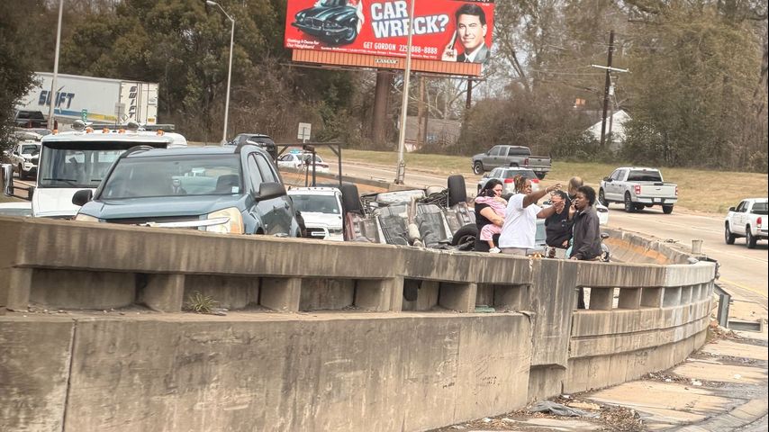 BATON ROUGE - A vehicle overturned in the southbound lanes of Interstate 110 near the North 22nd Street curve.