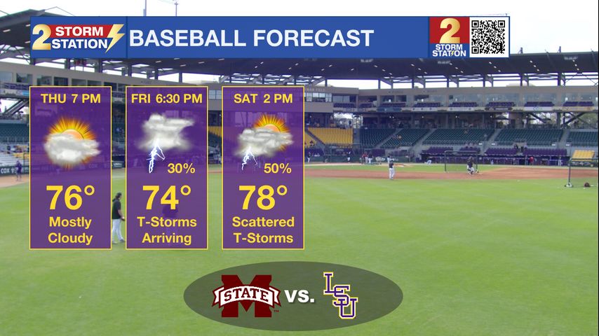 Those with outdoor plans anytime between Friday afternoon and on Saturday, especially LSU Baseball, should monitor the forecast, and radar, closely. While the severe weather threat with this early weekend round of storms remains on the lower side, a rouge strong thunderstorm cannot be ruled out.