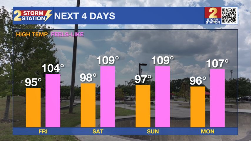 Thursday PM Forecast: heat index to climb well over 100 through Sunday
