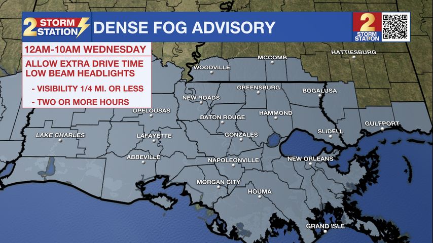A wildfire burning southwest of New Orleans could help to thicken fog near the Crescent City tonight. The mix of smoke and natural fog would create what is known as superfog, and could result in extremely low visibilities and dangerous driving—particularly in St. John, Jefferson and Orleans Parishes. Those commuting to New Orleans for work or Super Bowl festivities should be advised.