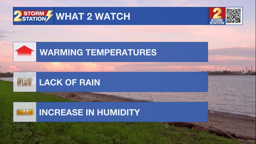 Tuesday begins another streak of 80 degree days with warmer mornings on the way as well. A quiet weather pattern will continue all week with little to no rain expected.