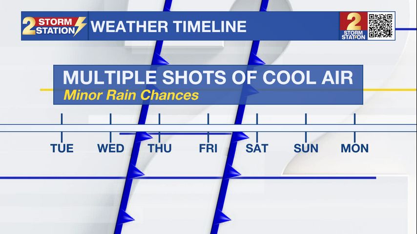 Up Next: Wednesday’s cold front will swing the door wide open and invite another shot of cold air into the Capital Area. On Thursday, near-freezing lows will return, with highs returning to the low 50s. While Friday will begin in the low 30s again, daytime highs will trend warmer into the mid-60s. That’s ahead of another cold front into Saturday, reinforcing the cooler pattern into the weekend. This front appears moisture-starved, resulting in little to no rain.