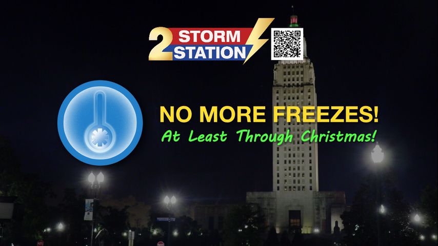 Christmas Week & Day: An expansive ridge of high pressure will take over next week, keeping much of the Southern U.S. on the warmer and drier side of average. Baton Rouge will likely see highs in the 70s and lows in the 50s all week long, even on Christmas Day. Rain will be scarce.