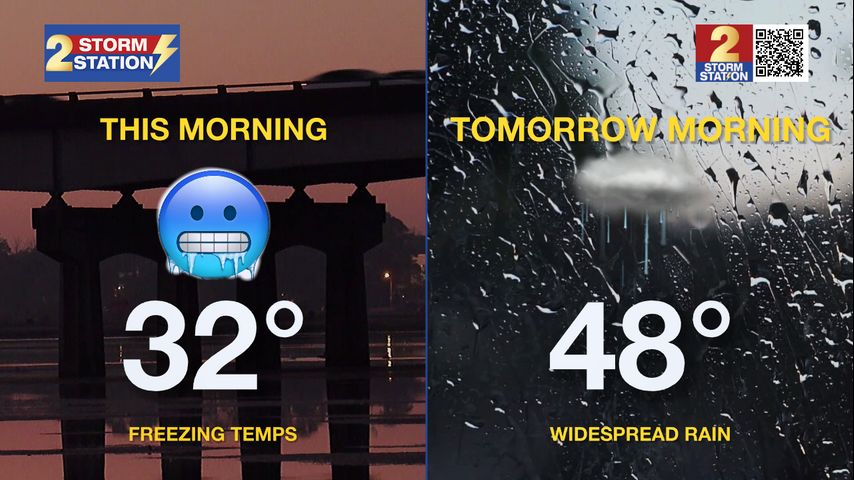 Cold temperatures are the main headline this morning, with some spots dipping close to freezing. Attention then turns to early Thursday, when rain moves in and leaves most of us getting wet.