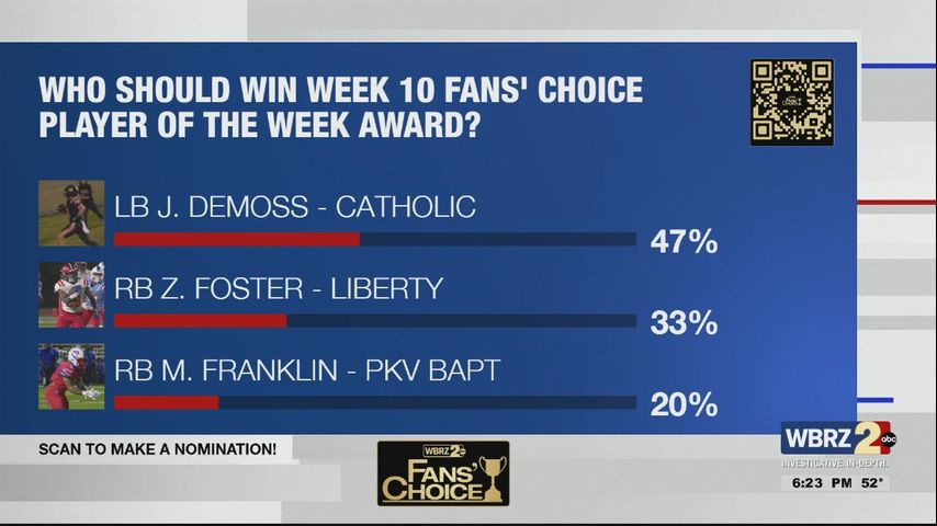 LB John Russell Demoss - Catholic: The senior linebacker scored two defensive touchdowns for the Bears in their win over Zachary. Demoss recovered a fumble and returned it for a touchdown, and he also found the endzone on a 61-yard pick six.